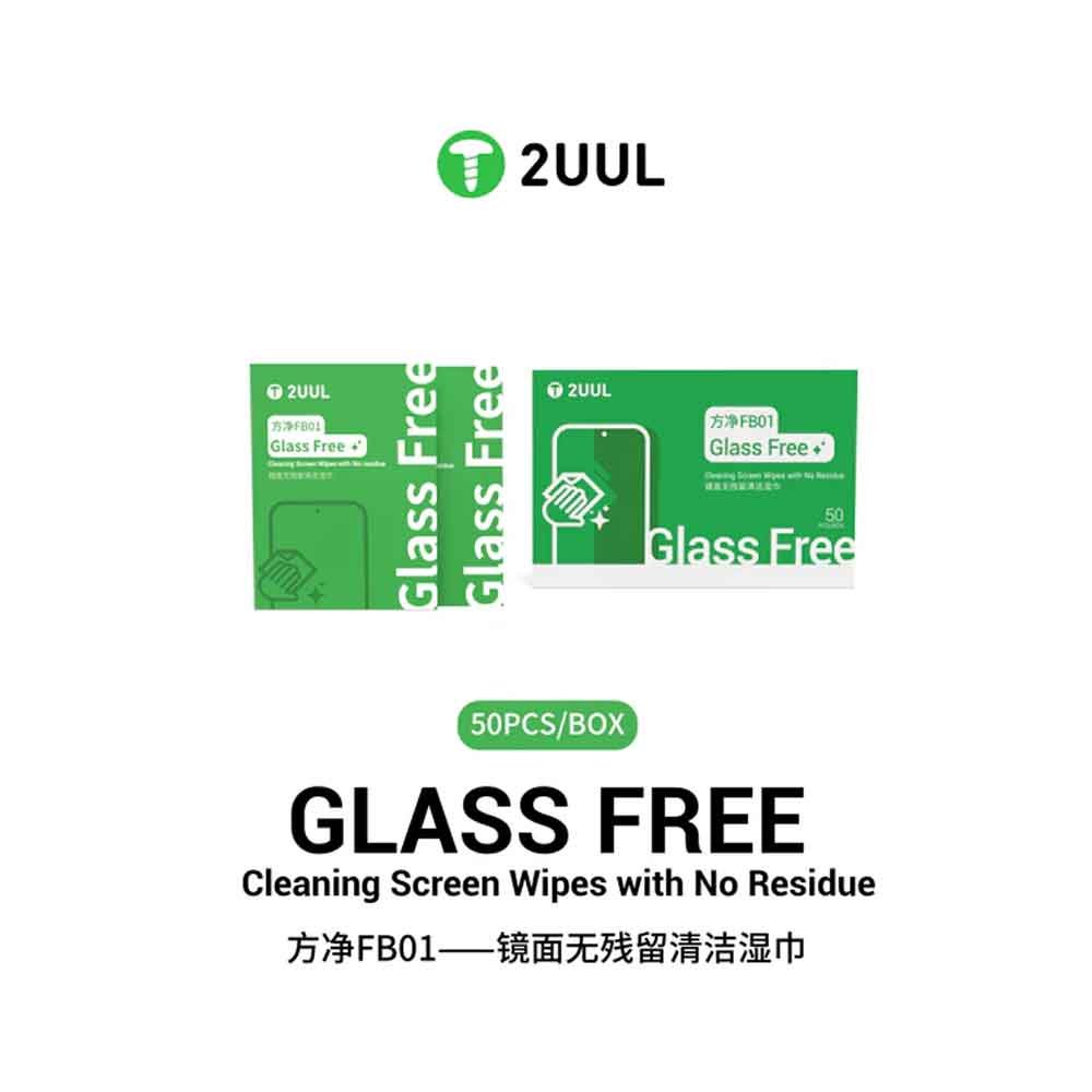 The 2UUL FB01 Glass Free Cleaning Screen Wipes with No Residue (50 Pcs/Box) are designed for professional and everyday use to keep mobile screens spotless. These premium wipes effectively clean fingerprints, grease, dust, and light stains while protecting delicate screen coatings.