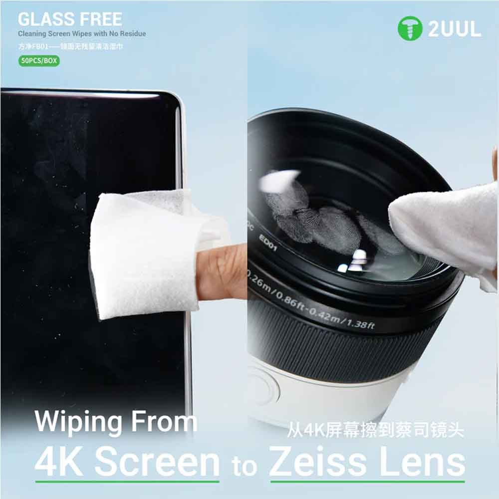 2UUL FB01 Glass Free Cleaning Screen Wipes with No Residue( 50 Pcs/Box )