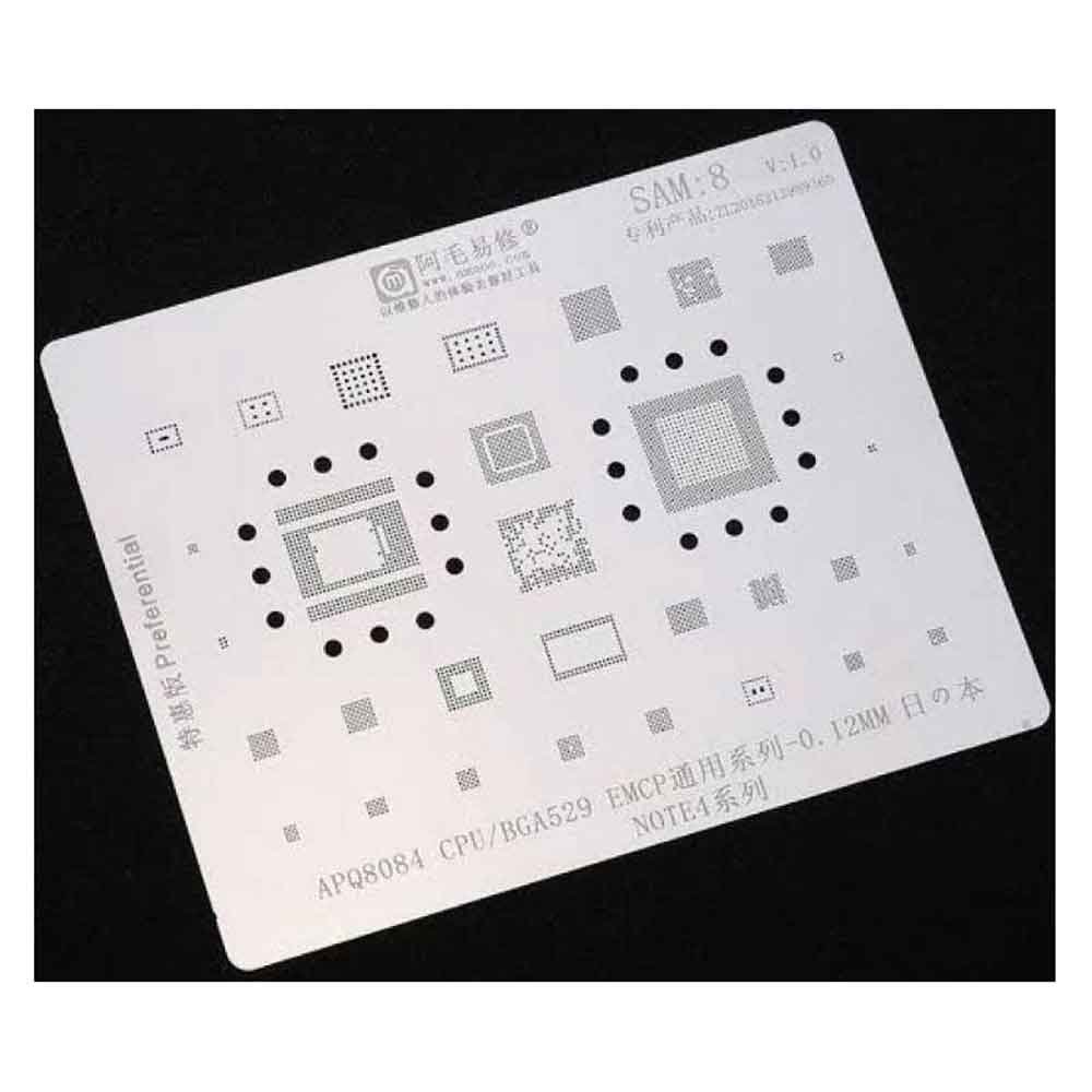 The Amaoe SAM-8 Stencil for Note 4 is engineered for professional mobile repair technicians performing advanced chip-level servicing. Designed specifically for Samsung Galaxy Note 4 motherboards, this stencil ensures precise solder ball alignment during CPU, eMMC, and IC reballing.