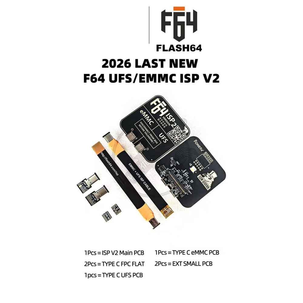 The F64 ISP 2 Version eMMC UFS Adapter is a professional-grade ISP (In-System Programming) tool designed for mobile phone storage repair and data recovery. It supports both eMMC and UFS chips, allowing technicians to read, write, and repair storage directly from the motherboard without removing the chip.