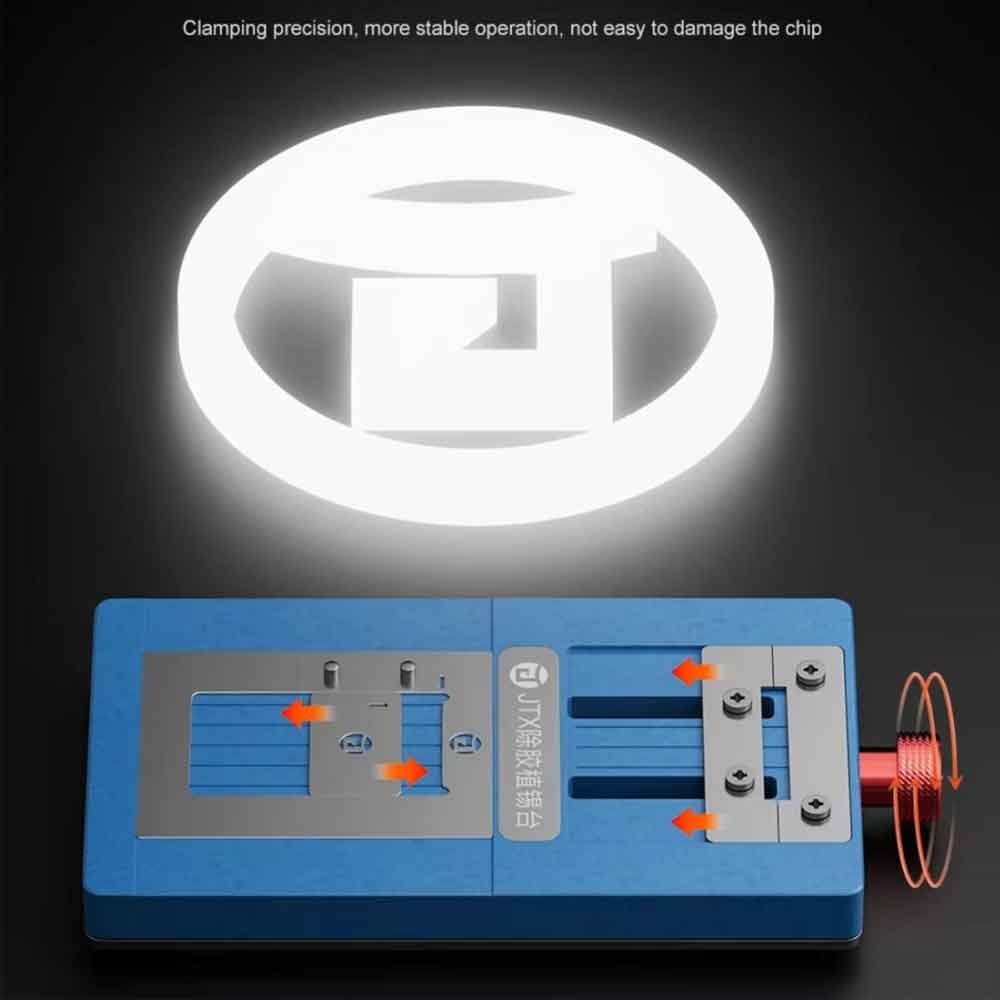 The JTX T4 Pro Universal IC Chips Glue Removal and Reballing Platform Set is a premium fixture for advanced mobile phone and motherboard chip-level repair, built to help technicians perform efficient glue removal and precise reballing (tin planting) across a broad range of chipsets. Featuring a 2-in-1 platform design, it greatly enhances workflow efficiency by combining degumming and reballing in one tool — saving time and reducing repair costs.