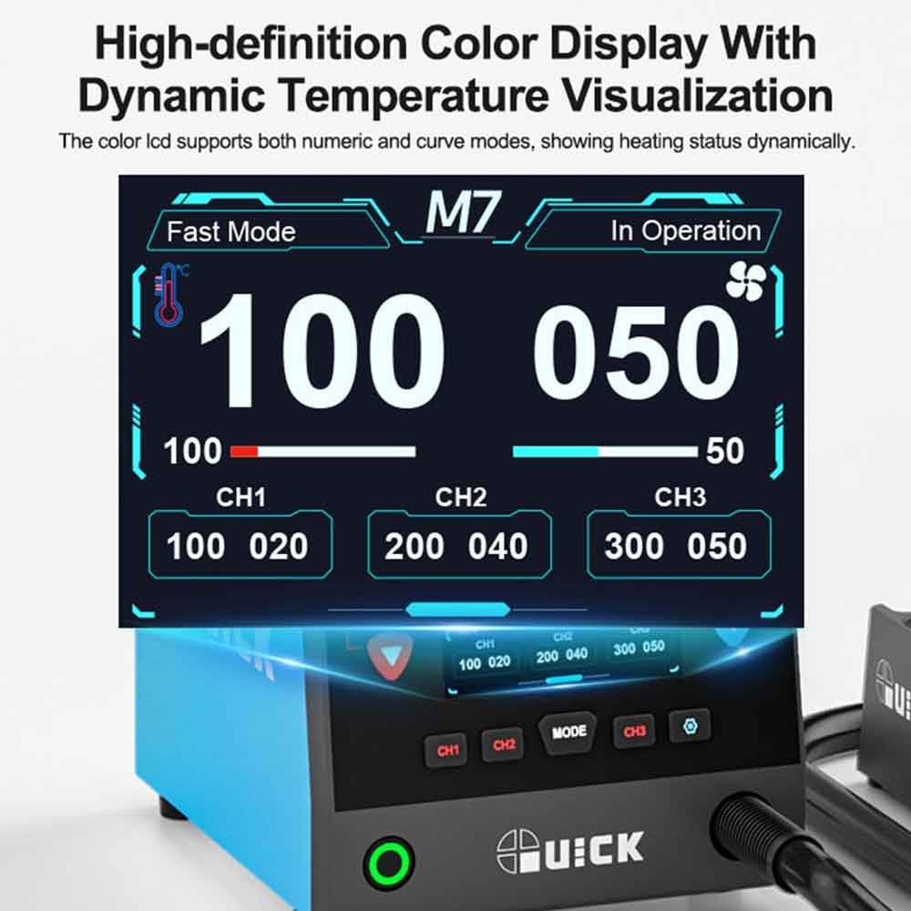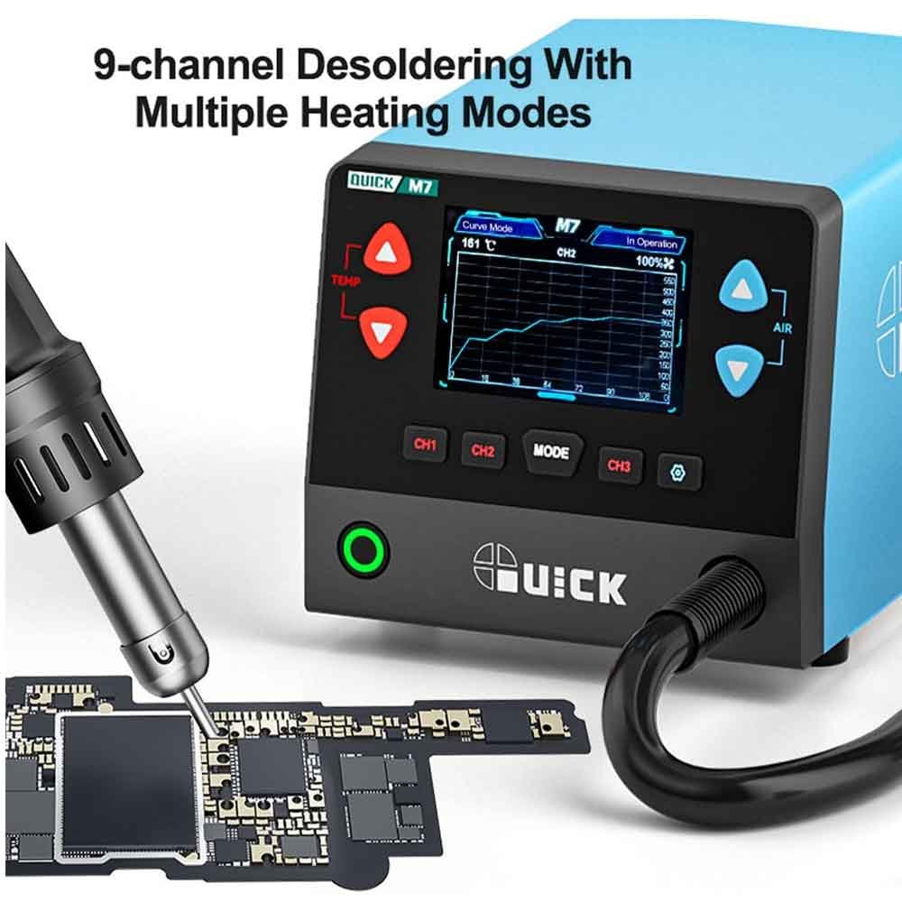 Quick M7 1000W 9-Channel HD Digital Display Intelligent Hot Air Gun Desoldering Station