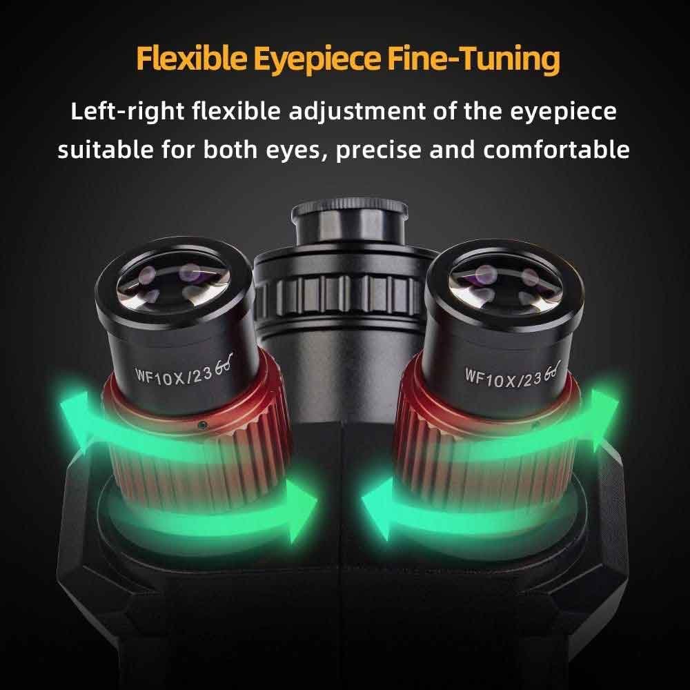 - 360° Rotatable Head & Ergonomic Eyepiece Adjustment — Easy repositioning and interpupillary distance adjustment for comfortable, personalized usage.